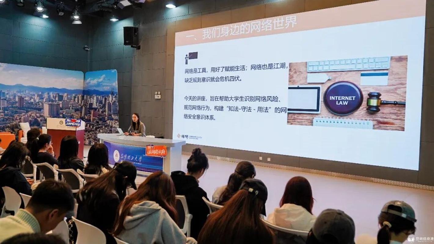 云南省互联网违法和不良信息举报中心网络空间安全工程师张倩,则结合“作品传播者”身份,通过视频演示、平台操作展示,讲解如何辨别网络不良信息、规范作品传播流程。她特别提到,创作普法作品在网络发布时,需注意“信息来源合法性”“受众导向正确性”,并现场指导如何通过官方渠道举报传播中的不良内容,帮助学生既做好“普法创作者”,也当好“合规传播者”。