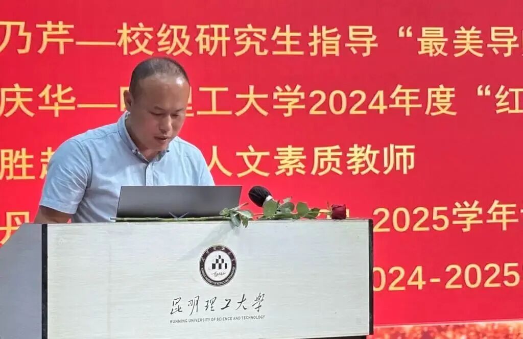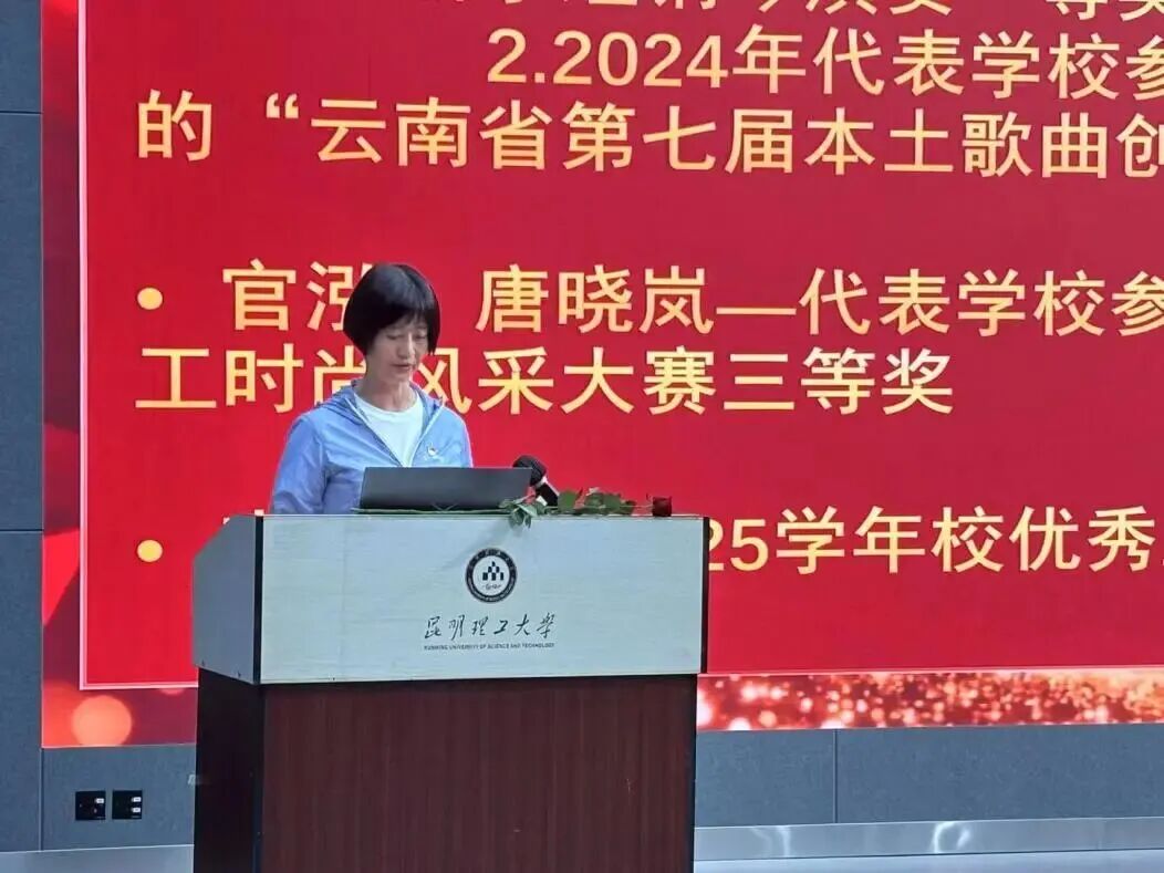 进入表彰环节,学院各分管领导与工会委员代表依次登台,分别宣读了 2024-2025 学年在教学、科研、管理、学科竞赛及工会等工作中的受表彰名单。